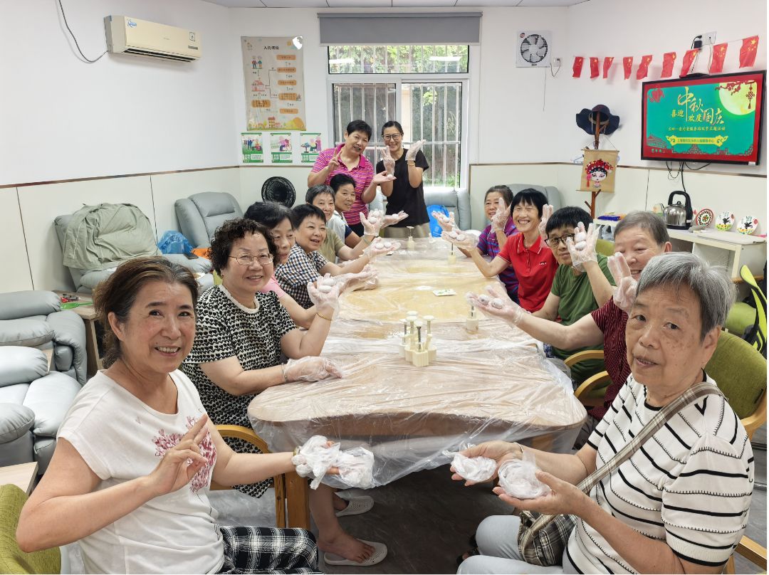 中秋佳节,吃月饼是中华民族的传统习俗,它承载着深厚的文化意蕴和团圆的美好寓意。在此次活动中,冰皮月饼制作成为各站点欢度双节的亮点,为老人们带来了满满的节日仪式感。在工作人员的精心准备和示范下,老人们积极参与,亲手制作月饼长江云配,从和面到包馅,再到压花成型,每一个环节都洋溢着热情与专注。老人们在制作过程中不仅体验了动手的乐趣,还享受了品尝自己劳动成果的喜悦,团圆的温馨在欢声笑语中弥漫开来。