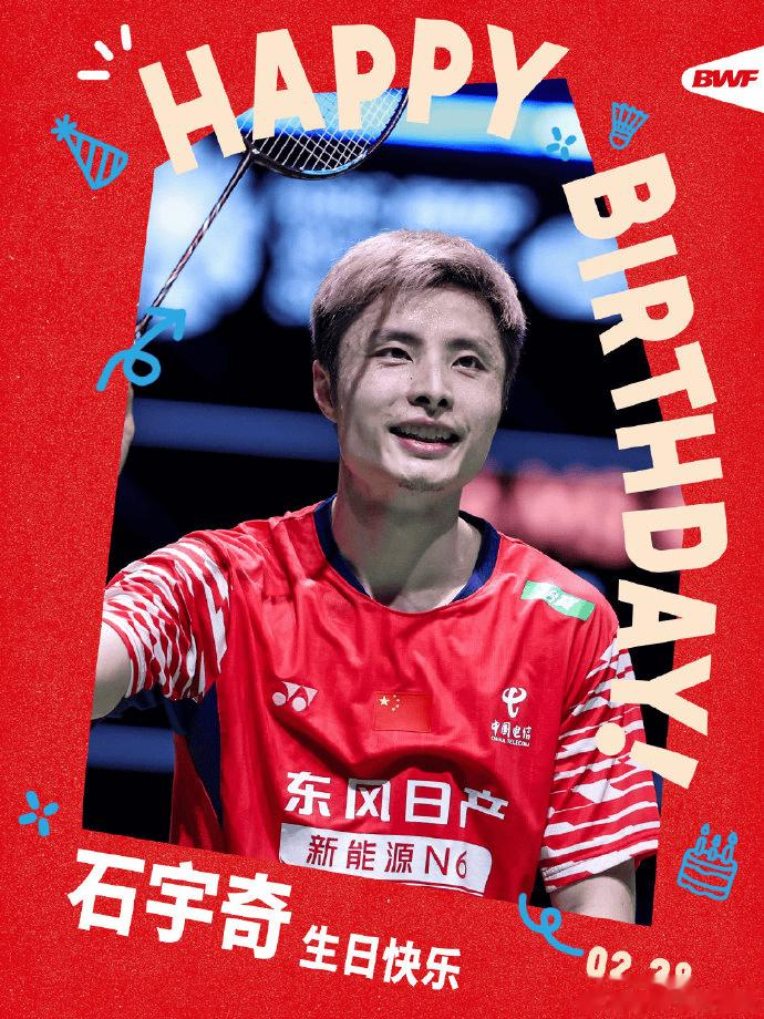 虎扑02月28日讯今日,世界羽联官方更新社媒,向男单现世界第一、中国名将石宇奇送上了30岁生日祝福,并配文:健康无忧,怀揣“奇”志,去闯更广阔的天地!